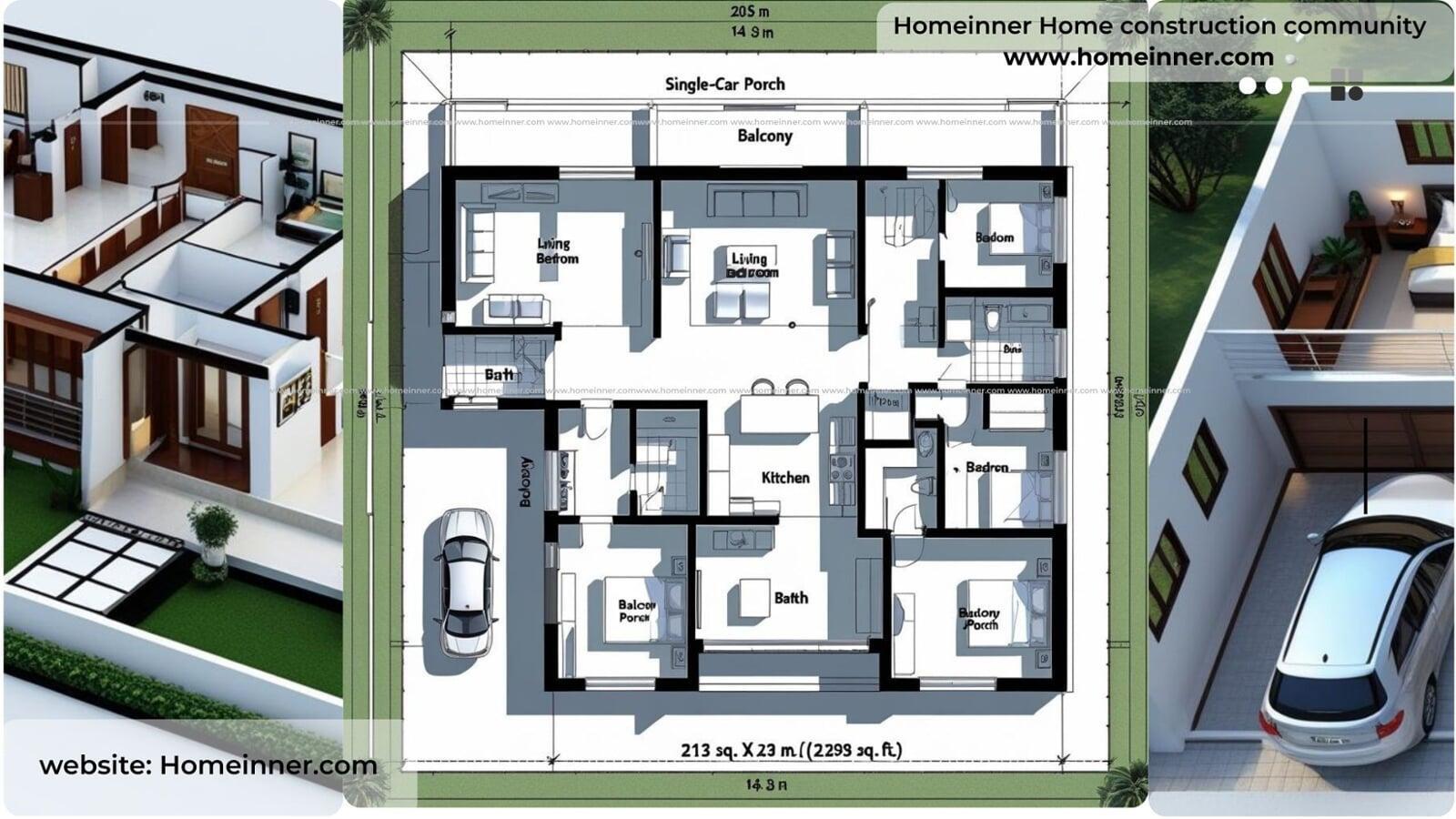 Outdoor Spaces: The design includes a main balcony at the front and two private porches, offering plenty of options for outdoor relaxation.